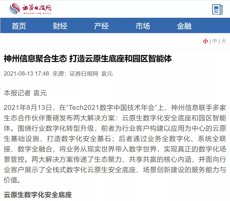 神州信息聚合生态 打造云原生底座和园区智能体